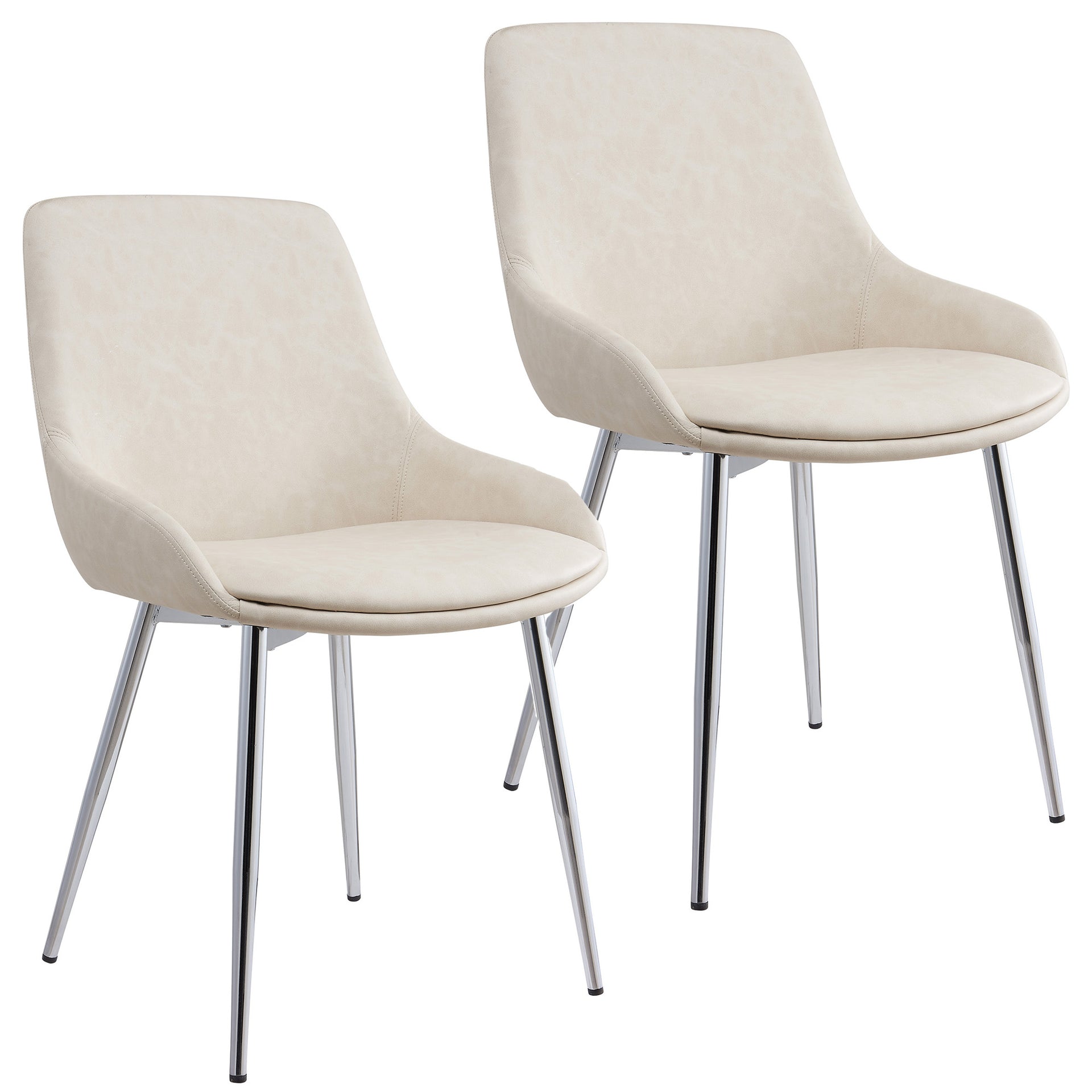 Description Features Specifications The sloped back of this mid-century modern style chair adds a level of sophistication and a dash of excitement to any room. Upholstered in a soft faux leather fabric, the chrome-finished legs of this piece further enhance its overall allure while the sturdy frame ensures comfortable seating...
