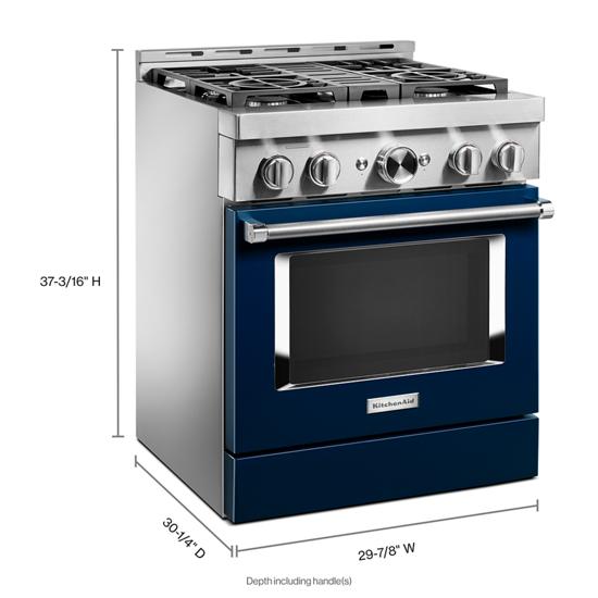 KitchenAid KFGC500JIB 30'' Smart Commercial-Style Gas Range with 4 Burners in Ink Blue