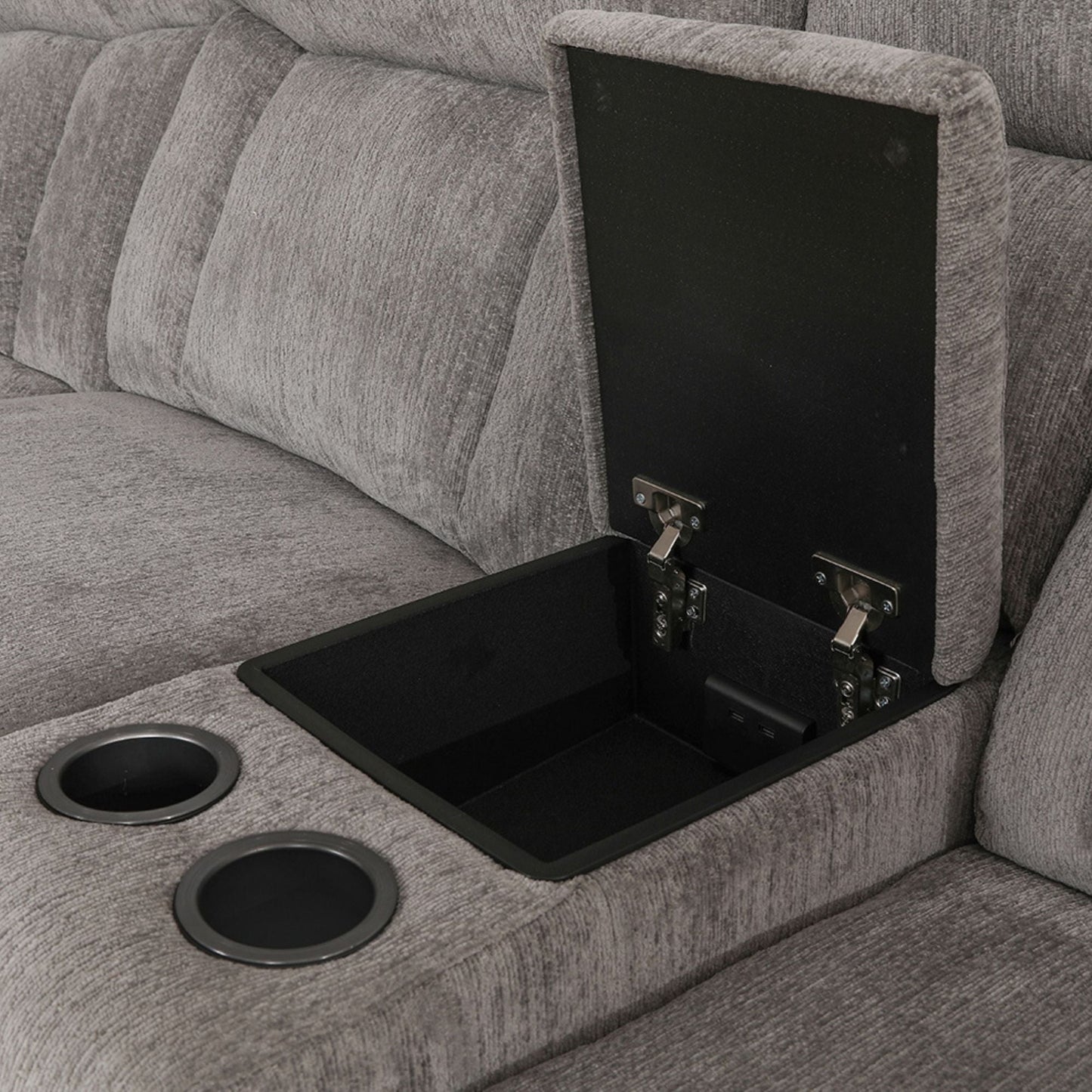 Upgrade your comfort zone with this high-performance power recliner sectional, upholstered in soft light grey fabric. Designed for convenience and durability, this sectional features built-in USB and power outlets on the armrests, plus an extra USB port hidden in the console’s storage compartment—keeping your devices powered while you relax. The...