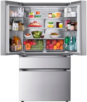 Description Features Specifications This 4-door Standard-Depth MAX™ refrigerator doesn't just give you space-it brings a new level of organization, flexibility and style to your kitchen. Sleek look with a slam-resistant door design and choice of pocket or dual handles add a premium feel. French doors offer easy access to fresh...