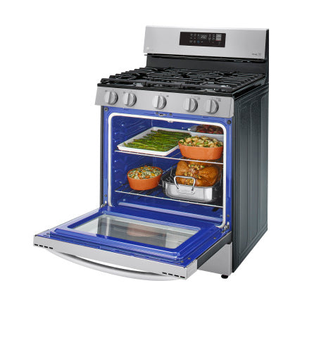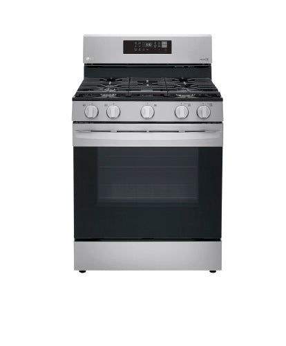 Description Features Specifications This 30" Smart Gas Range from LG offers a 5 burner cooktop and a 5.8 cu. ft. capacity oven. The range features Air Fry, fan convection, self clean and a storage drawer.  AirFry Fan Convection 20K BTU Burner Self Clean & EasyClean® Premium Wide Grates and Cast...