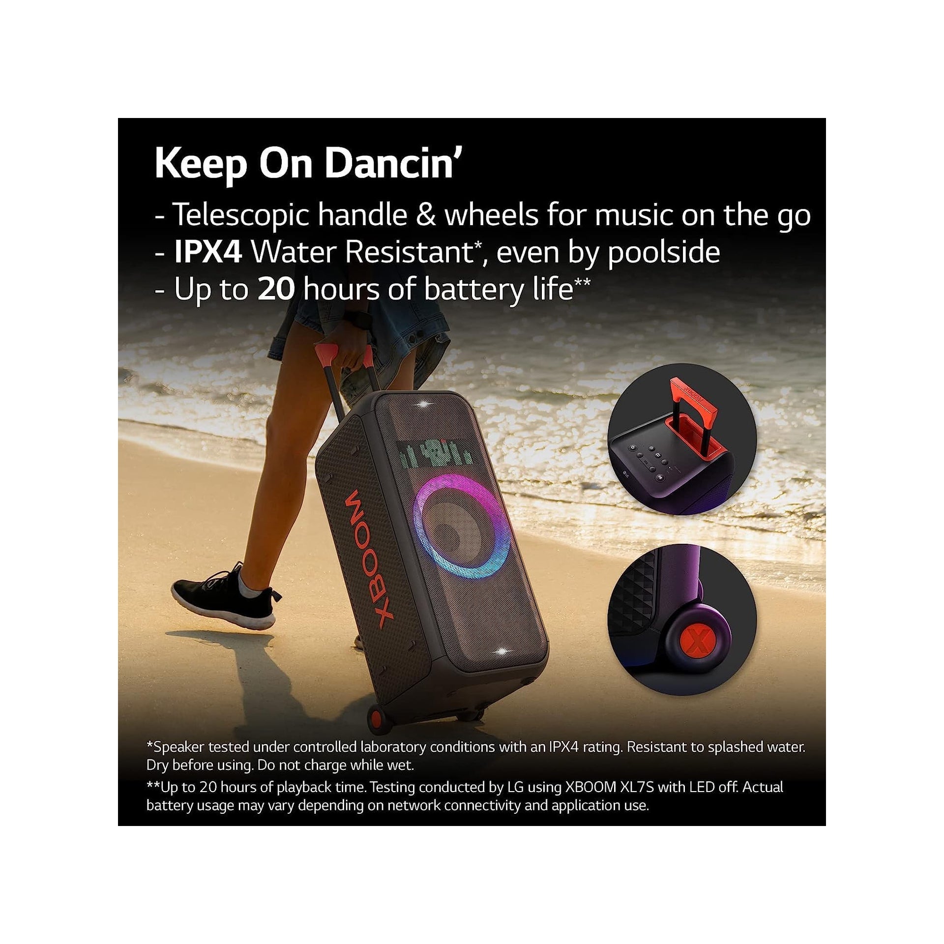 LG XBOOM XL7 Portable Tower Speaker with 250W of Power and Pixel LED Lighting with up to 20 Hrs of Battery Life,Black