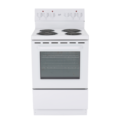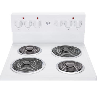 Description Features Specifications Epic 24" White Electric Coil Range with "CTL Elements" Perfect for the cottage, apartment or wherever space is tight, this Epic 24” wide contemporary style range features 2-6’’and 2-8’’ CTL elements with chrome burner bowls. Bake or Broil in the spacious 2.7 cu.ft. easy clean oven with...