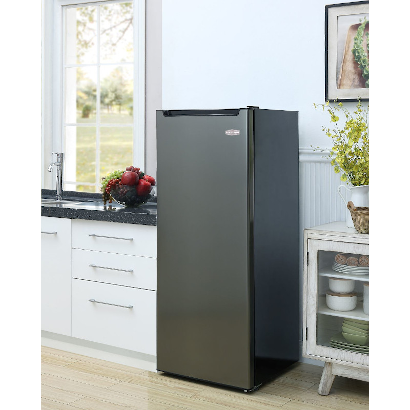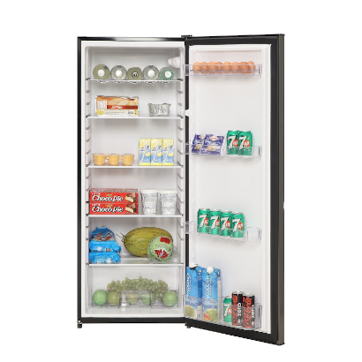 Description Features Specifications Marathon 9 cu.ft. Black Steel All-Refrigerator Either as a stand-alone "All Refrigerator" or when paired with the matching Marathon Upright Freezer, this classic white 8.5 cu. ft. "All Refrigerator" is Energy Star certified and features Automatic Defrost, 3 adjustable tempered glass shelves, 5 bottle chrome plated wine...