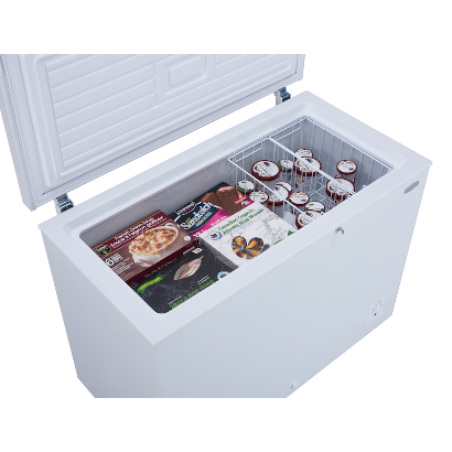 Description Features Specifications Marathon 8.6 cu.ft. White Chest Freezer Perfect for when more freezer space is needed. This spacious Marathon 8.6 cu.ft. chest freezer comes with wheels for mobility and a rust resistant and easy to clean white aluminum interior. Other features include a convenient front defrost drain and adjustable...