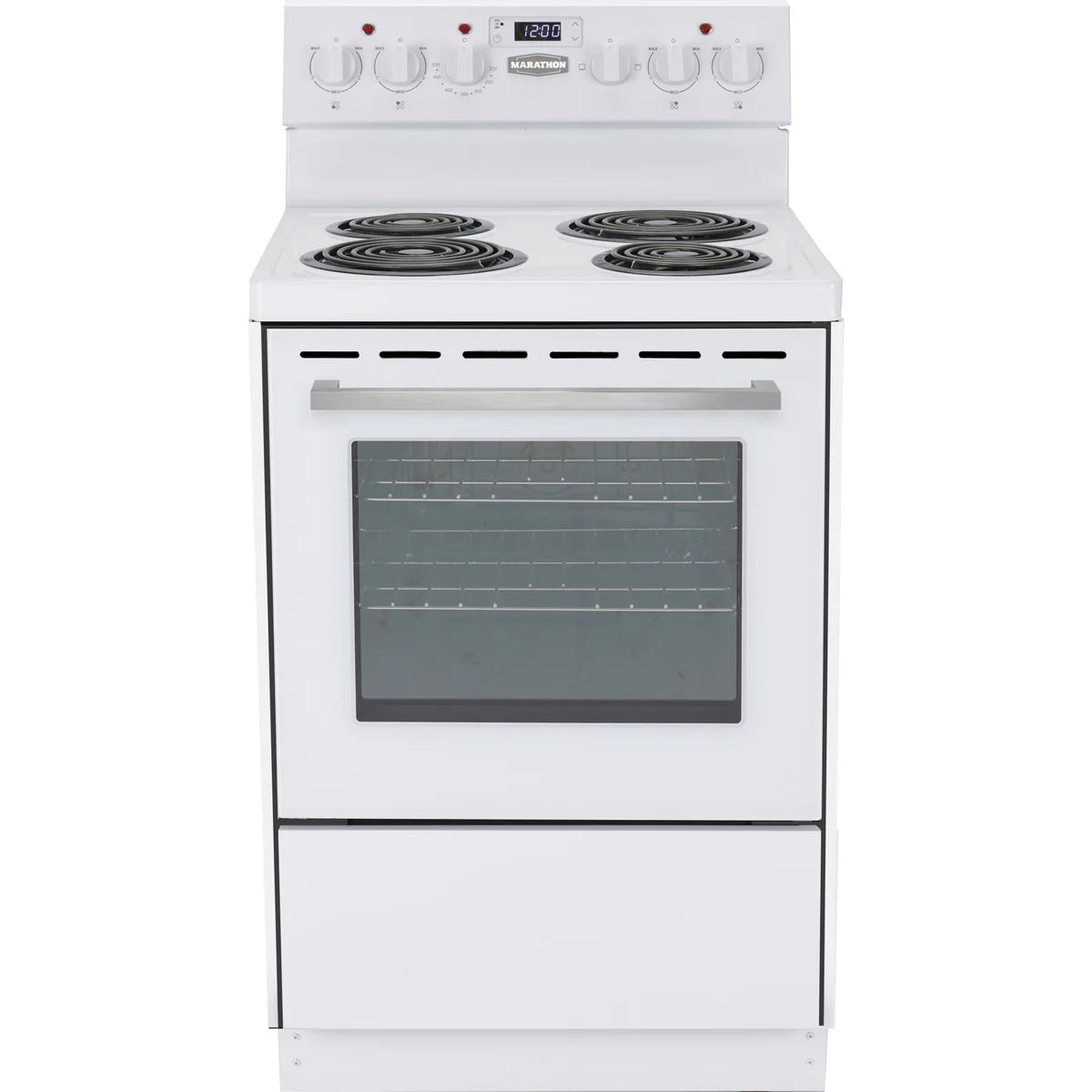 Marathon MER241W-1 24" White Electric Coil Range with Clock