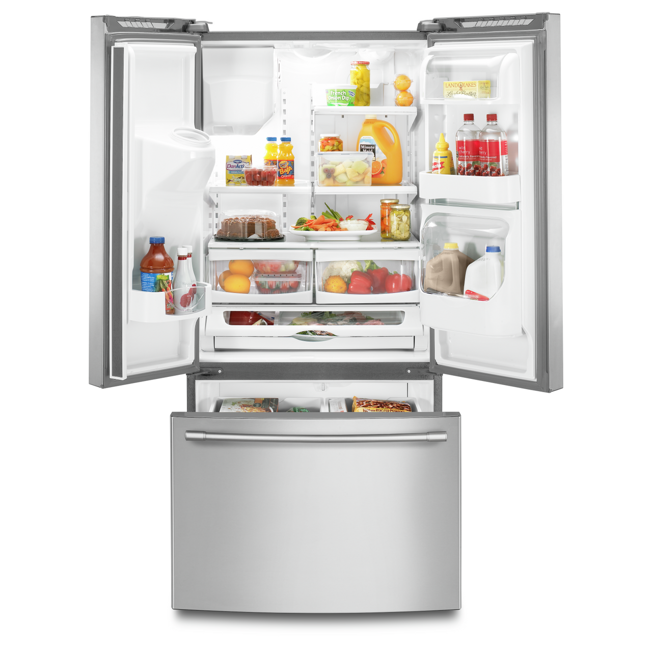 This Maytag® French Door Refrigerator is an exquisite combination of heavy-duty components and stylish features. Elegantly designed in Fingerprint Resistant Stainless Steel, it boasts a PowerCold® system to quickly chill the interior and a Beverage Chiller™ to ensure your drinks are the perfect temperature. The Wide-N-Fresh™ deli drawer offers the...