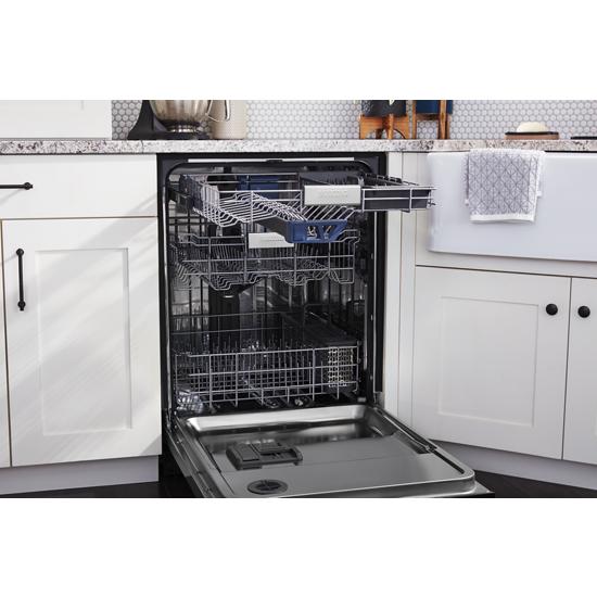 Description Features Specifications Maytag dishwashers featuring the Third Level Rack with specialized wash zone deliver more loading space and cleaning power, while enhanced dishwasher drying options combine heat with a powerful fan. Plus, Dual Power filtration, an industry-exclusive dishwasher filtration system, disintegrates any food in its path, letting you skip...