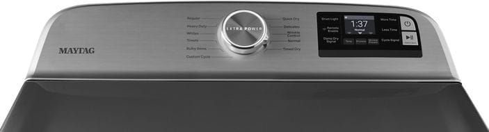 Description Features Specifications One push of the Extra Power button on Maytag® heavy duty dryers boosts drying power on any cycle by extending time, heat and tumbling. This top load dryer helps evenly dry loads with Advanced Moisture Sensing. Plus, optional smart gas dryer features like remote start and cycle...