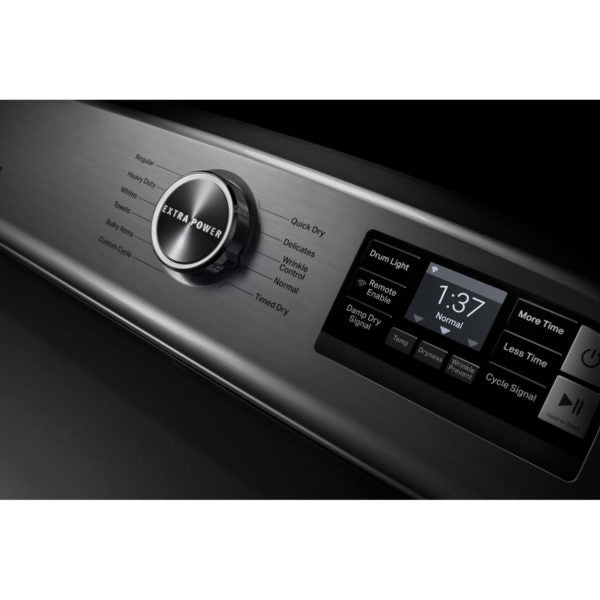 Description Features Specifications One push of the Extra Power button on Maytag heavy duty dryers boosts drying power on any cycle by extending time, heat and tumbling. Commercial-grade dryer technology ensures it's built to last, while smart electric dryer features like remote start and cycle notifications help you stay in...