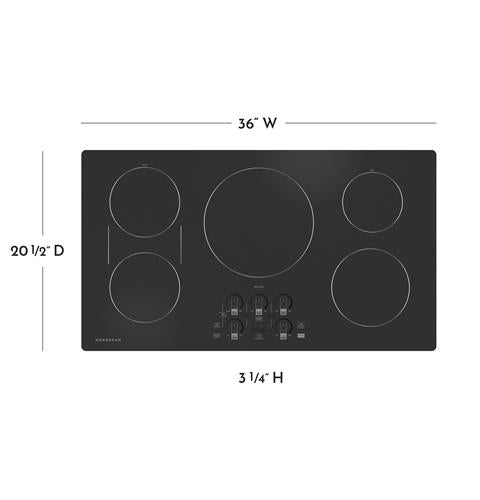 Description Features Specifications This 36 Inch smart induction cooktop has easy-to-use glide touch controls, five induction cooking elements, and precision cooking to allow you to achieve restaurant-quality results with the ease of home cooking. 5 Induction Cooking Elements This 5-burner induction cooktop provides rapid heat that quickly responds when you...