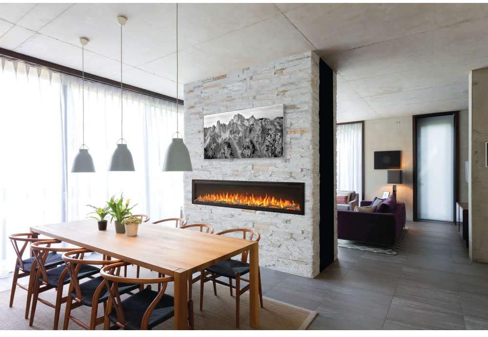 Description Features Specifications Make a statement with the Napoleon Entice™ 72 Electric Fireplace. This fireplace puts out an incredible amount of heat, glittering with multicolored flames and a crystal ember bed.  5 size options in width: 36", 42", 50", 60" and 72"5,000 BTU’s heats up to 400 sq.ft.120 V /...