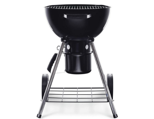 Napoleon's compact and agile Charcoal Kettle Grill, the NK18K-LEG, is an 18-inch kettle that is ideal for any charcoal enthusiast. Grill and slow roast with ease, or smoke by including your favorite wood chips and chunks. When charcoal grilling, being able to control heat through airflow is essential. The adjustable air vents make it easy to manage airflow for precise temperature control, including top venting that is protected from the elements. The Vortex heat management system improves convection within the grill for better searing and smoking as well as improved fuel efficiency. Stainless steel grids heat quickly and need little maintenance, they are hinged to allow easy addition of extra charcoal, refilling water pans, and addition of wood for smoking. The integrated temperature gauge helps you maintain the perfect temperature while you grill at a comfortable height, thanks to improved leg joints that provide rock-solid stability and an elevated grilling surface for your barbecue needs.