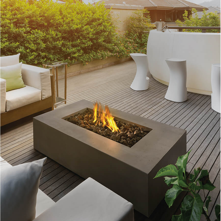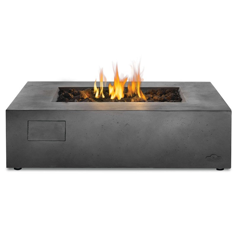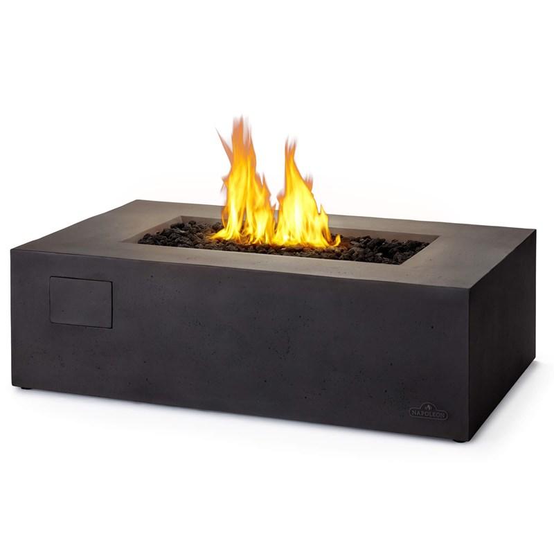Extend the amount of time you can enjoy the outdoors with this modern alternative to a fire pit. The Napoleon Uptown Patioflame® table is a rugged, and solid-looking linear fire pit made from durable cast aluminum that looks like formed concrete. Stylish black lava rock media fills the ember bed...
