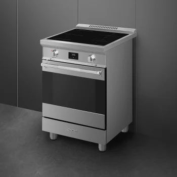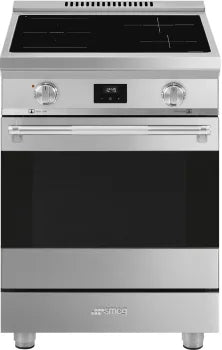 Description Features Specifications This Smeg SPR24UIMX 24-inch induction range belongs to the Professional Series. It has a stainless steel and black glass finish, a thermo-ventilated oven with 8 cooking functions, and a VaporClean system, a 2.79 cu. ft. oven cavity with EverClean enamel, 5 shelves, and halogen light, a soft...