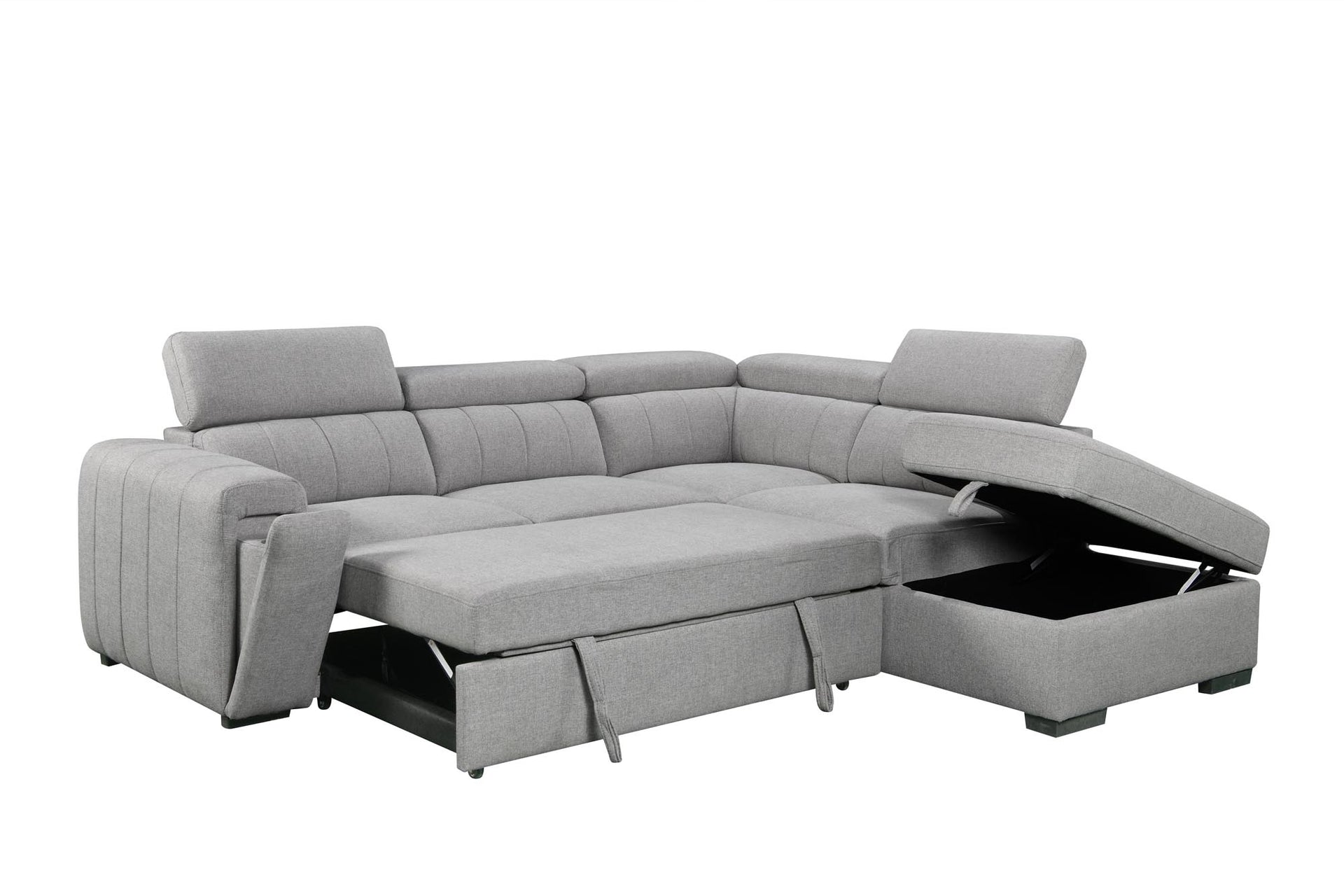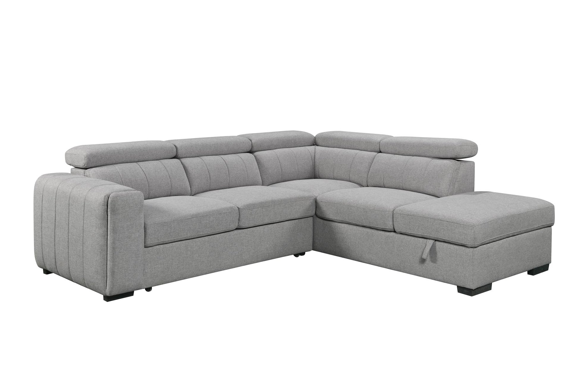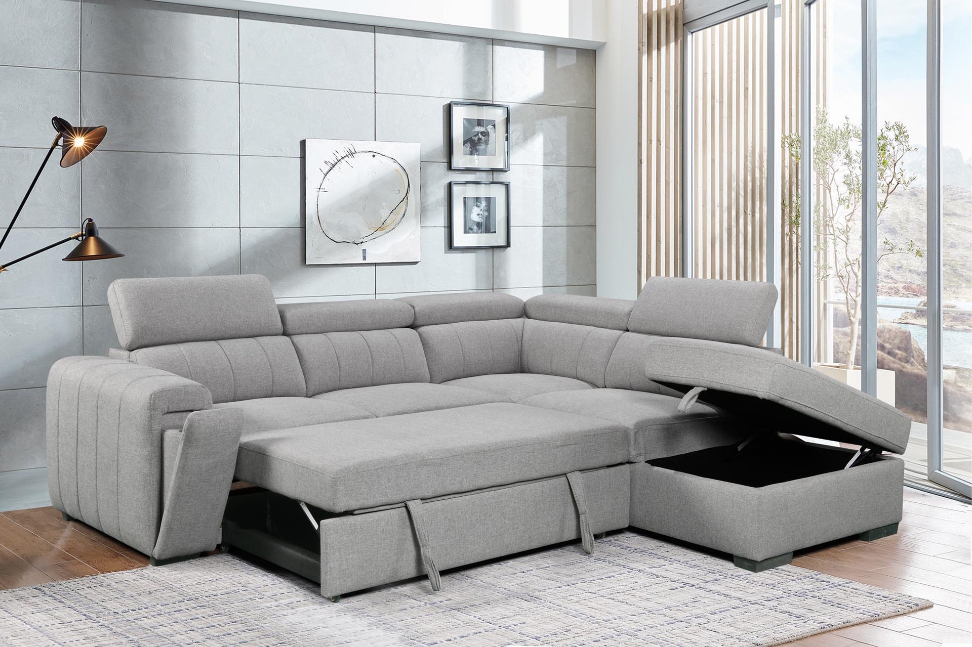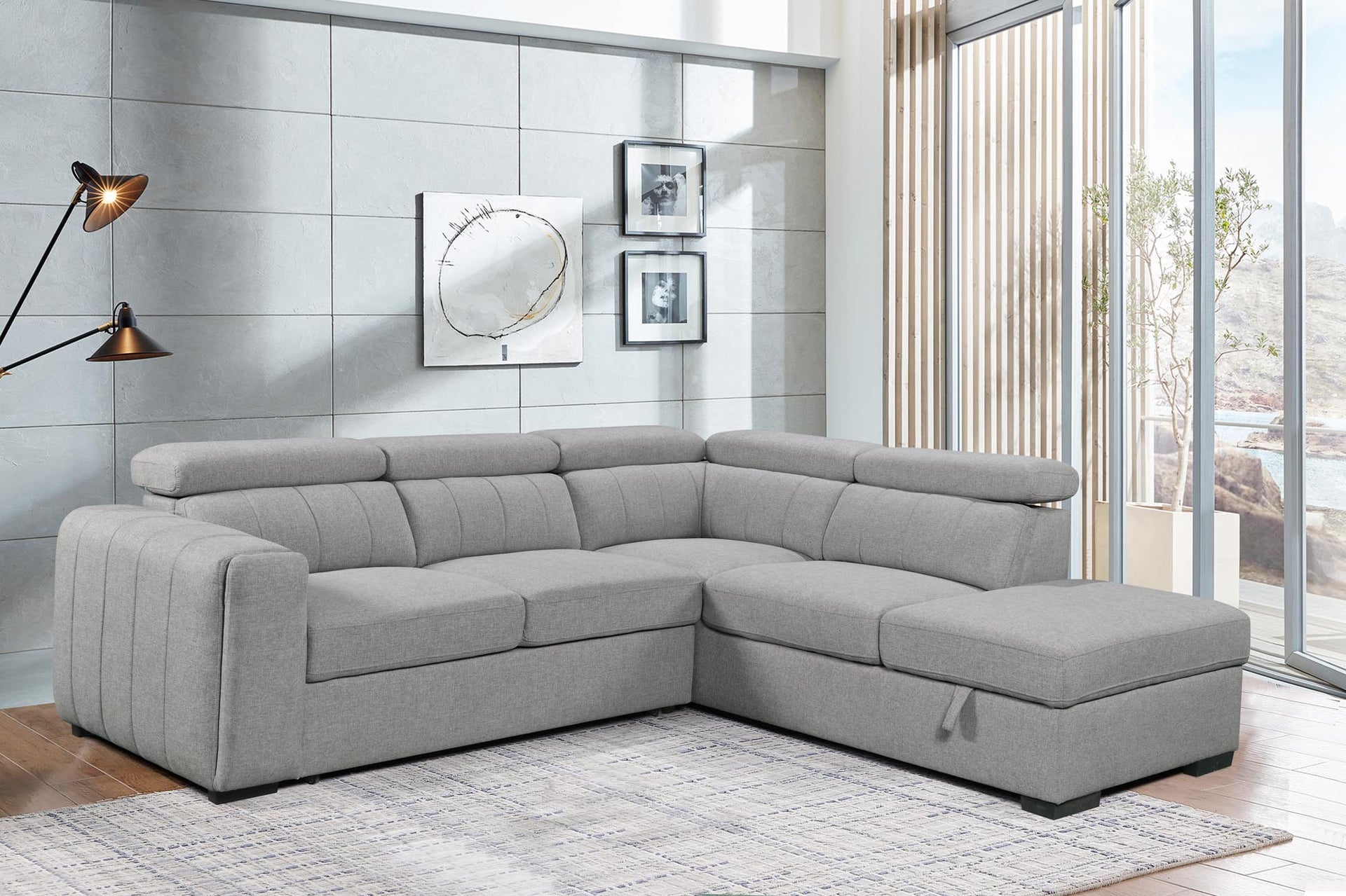 The Vesta Sofa Bed Sectional combines sleek modern style with multi‑functional design, making it a perfect choice for today’s homes. Upholstered in soft grey fabric with tailored channel stitching, this sectional offers both elegance and everyday comfort. The LHF corner chaise lifts to reveal a spacious storage compartment—ideal for extra...