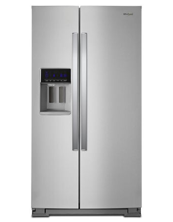 Description Features Specifications Maximize food storage with this 21.0 cu. ft. Whirlpool side-by-side refrigerator. Its In-Door-Ice storage frees up more freezer space, and its external ice and water dispenser and EveryDrop filtration system let you access safe drinking water quickly. Fit more beverage bottles in the adjustable gallon door bins...