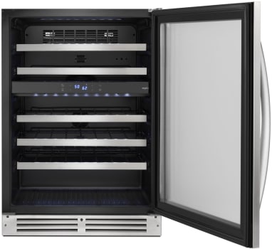 Description Features Specifications Stay organized with purposeful spaces for your wine. This wine center features a dual-temperature controlled zone so you can customize up to two different temperatures. The undercounter refrigerator hides smudges with fingerprint-resistant stainless steel. Plus, you can store up to 46 bottles of wine in this refrigerator...
