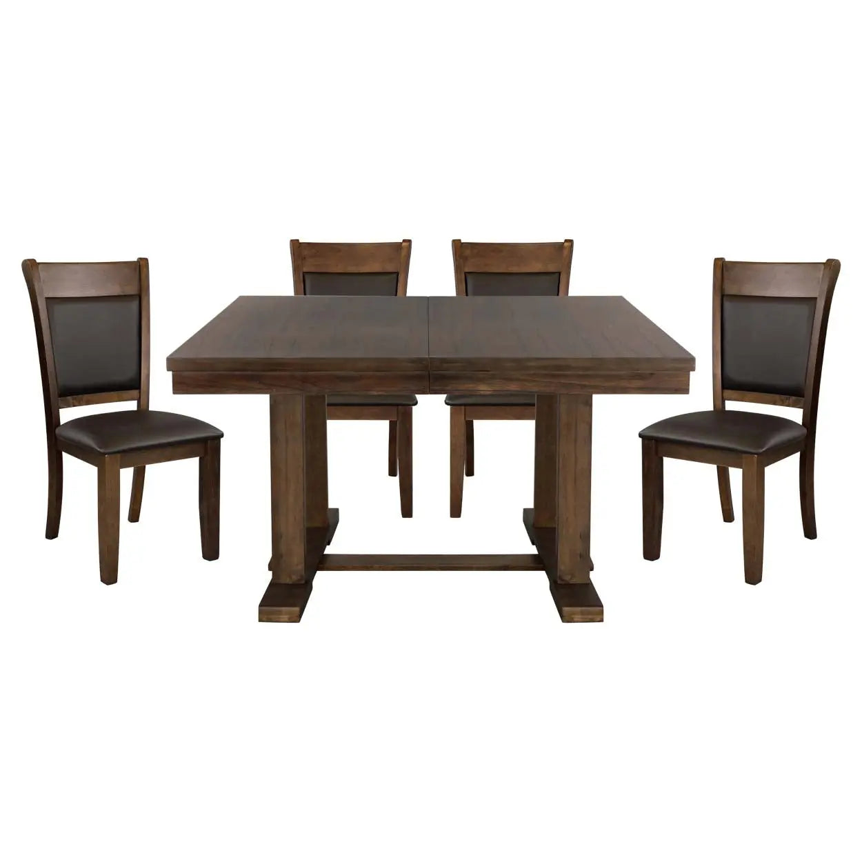 Styled for the transitional home, the Wieland Collection creates a classic profile for your casual dining area. The trestle base of the table paired with the mindy veneer, light rustic brown finish and brown faux leather seats create at table that is stylistically perfect for your environment. Furthering the design...
